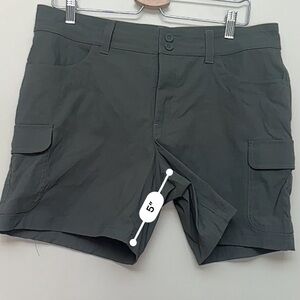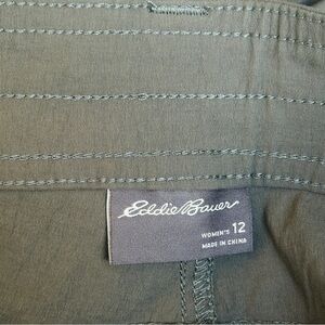 Eddie Bauer, Summer Trail shorts, women’s cargo shorts, hiking shorts, outdoor wear, olive green, quick-dry, size 12