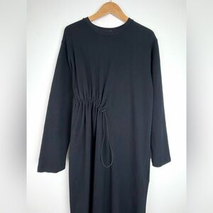 Linen Blend Zara Shirt Dress Minimalist Black White Print Button Down Pockets XL