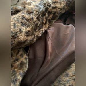 Vintage Amazing Sexy Classy Boho Soft Faux Fur Leopard Print High Collared Coat