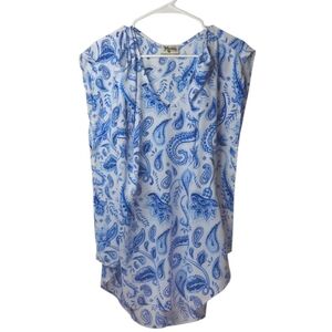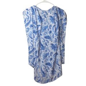 SMYMumu Blue Paisley Tunic Dress Shoulder Cutout Beach Boho Festival Oversize XS
