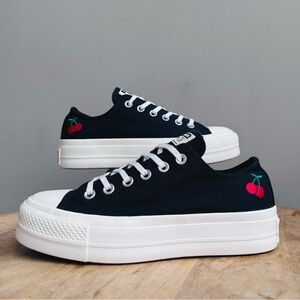 Converse Wmns size 7.5 Chuck Taylor All Star Lift Platform Low 'Cherries' Black