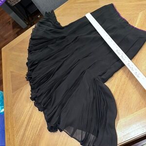 Vintage VICTOR COSTA Black Pleated Midi Skirt Women Size Lined Sheer Flounce Hem