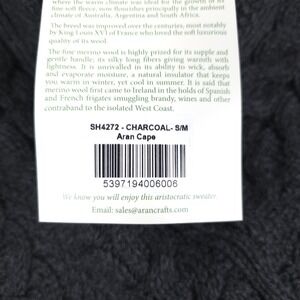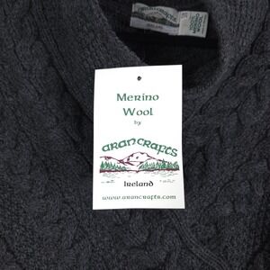 Aran Crafts Cape Womens Small Medium Charcoal Merino Wool Cable Knit Pullover