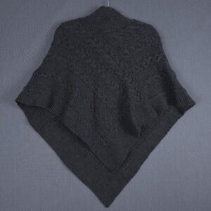 Aran Crafts Cape Womens Small Medium Charcoal Merino Wool Cable Knit Pullover Poncho Ireland SH4272
