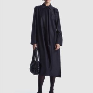 COS Deconstructed Wool Midi Shirt Dress - Collar Button Minimalist Utility sz 8