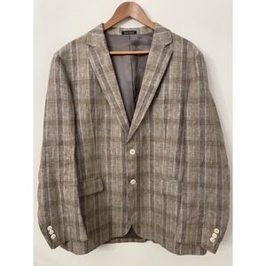 ENZO Tovare Mens Size 44R Sport Coat Blazer 100% Linen Tan Windowpane Plaid Boho