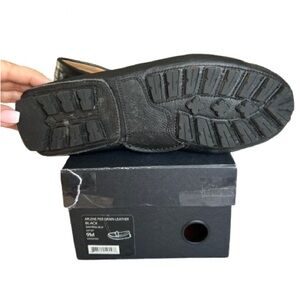 Elegant black loafers shoes,made from soft, grain genuine leather. Thanks to the unique design of the rubber sole, you’ll feel comfortable all day long—just like wearing slippers at home! The shoes are incredibly comfortable, featuring a soft leather insole and a gold buckle. These shoes are perfect for any occasion.” Pre owned. The shoes are in excellent condition, but the right one has a scratch that is slightly larger than an inch. Original box.Feel free to ask any questions.