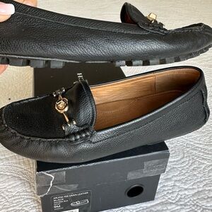 Coach ARLENE Black Leather Slip-On Loafers with Gold Accents