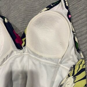 Tropical Floral Twist Front Halter One Piece Swimsuit Navy Pink Green White
