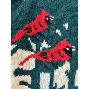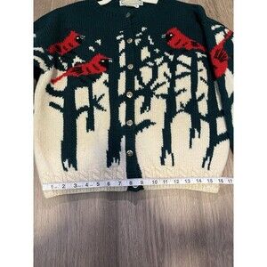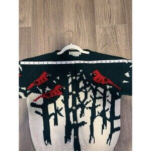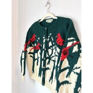 Vintage QUISSETT COVE Cardinal Birds 100% Shetland WOOL Cardigan Sweater Medium