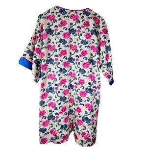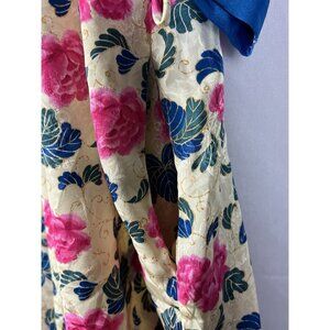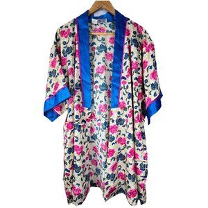 Floral Satin Sleep Robe Women Size M Blue Pink Tie Front Loungewear