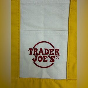 Set of two Trader Joe's canvas tote bags. One with green accents, the other with yellow. Perfect for shopping or everyday use.