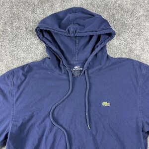 Lacoste Hoodie Mens Medium Navy Blue 100% Cotton Pullover Sweatshirt Logo