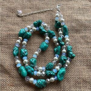Turquoise Necklace adjustable Glass Pearl Beads & Opal New Handmade