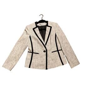 Kasper Tweed Blazer Jacket One Button Peak Lapel Black Trim Gray Womens Size 8