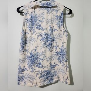 Vintage Ralph Lauren Blue Floral Toile Ruffle Blouse Cottagecore Sleeveless L