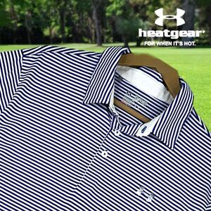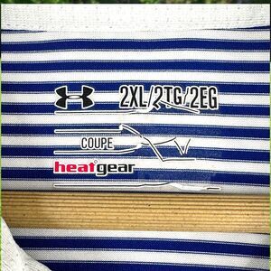 Under Armour Mens Heat Gear Golf Polo Shirt Coldback Blue White Stripe XXL 2XL