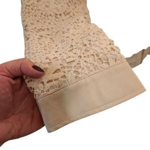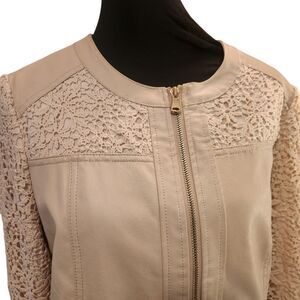 Chico's Faux Leather Blazer Jacket Size 1 Medium Ivory Cream Zip Lace Sleeves