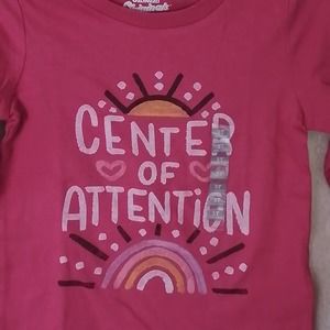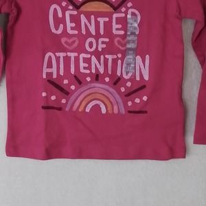 This 100% cotton tee is lightweight and breathable. It features a crew neck, long sleeves, and relaxed fit. The pink tee has a cool rainbow and sunshine graphic that says "Center of Attention." This T-shirt is new with tag.