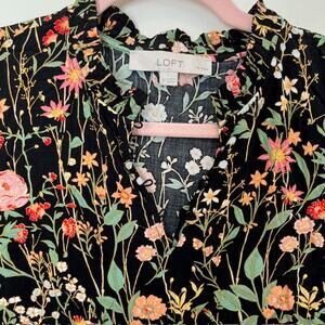 LOFT Women's Floral Ruffle Split Neck Dress Small Petite