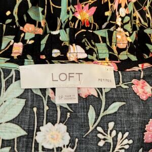 Feminine and effortlessly chic, this LOFT floral dress features a flattering split neckline with soft ruffle detail and an easy, swingy silhouette. The petite cut offers a perfect proportioned fit, making it ideal for everyday wear or dressed-up occasions. The dark background with delicate floral print makes this piece timeless and versatile year-round.