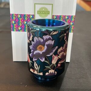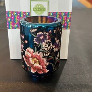 Enhance your home with the Scentsy Floral Blue Warmer. This elegant piece features a beautiful floral design in shades of blue and purple, perfect for adding a touch of sophistication to any room.