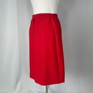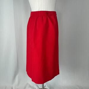 Vintage Midi Skirt Size 12 Red Solid Minimal Secretary Retro High Rise 70s 80s