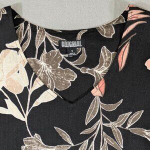 Nicole Miller Dress Womens S Black Linen Tiered Moody Floral Casual Chic Resort