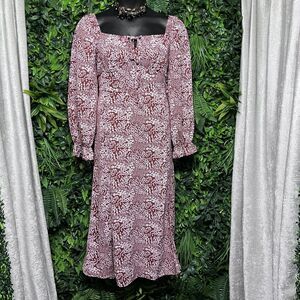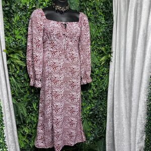 Stylish Dress Women XL Red Rusted Floral Maxi Ruffle Accent Cottage 2486