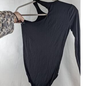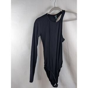 Women's Asymmetrical One Sleeve Bodysuit Wild Fable Black Ribbed Snap Crotch Small Crew