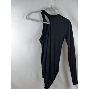 Bodysuit Asymmetrical One Sleeve Wild Fable Black Ribbed Snap Crotch Small Crew