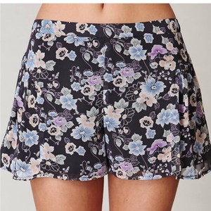 Free People Blue Floral Chiffon High Rise Lined Shorts Boho
