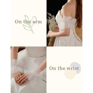 Design: This elegant short lace tulle gloves with ruffles decoration, another one have pearl accents, it can be worn on the wrist; the gloves are easy to put on and take off
