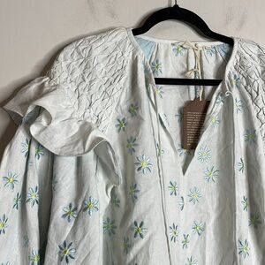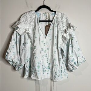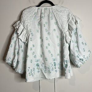 Forever That Girl Anthro | Ruffle-Sleeve Smocked Linen Blouse Size Medium NWT