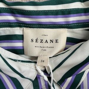 Sezane NWT Max Striped Shirt Green Purple Relaxed Fit Women's Size 34 US Size 2