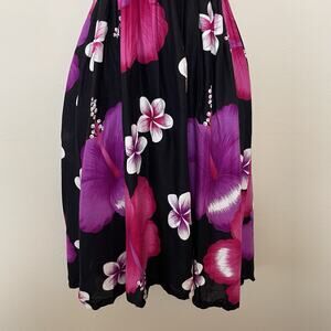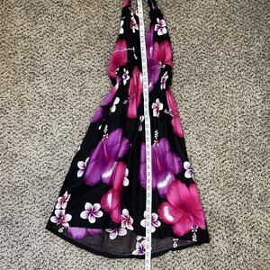 Vtg Black Pink Hibiscus Flower Halter Dress Hawaiian Y2K Babydoll Fairy Sz M