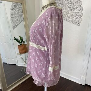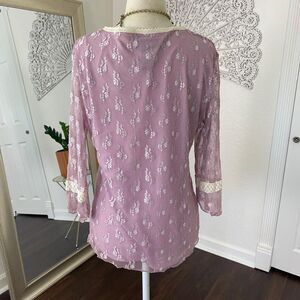 Notations Lilac Purple Whimsical Fairy Lace Crochet Babydoll 3/4 Sleeve Top S