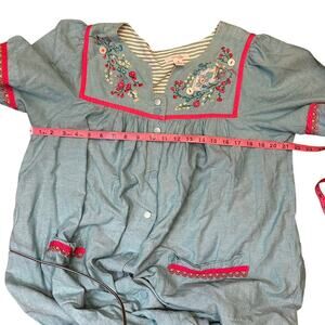 Vintage Go Softly Patio Embroidered Blue Cotton House Dress Women M Cottagecore