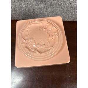 Vintage Art Nouveau Pink Powder Box~Hard Plastic~Detailed Lid~Display Vanity