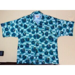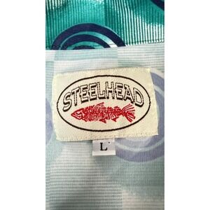 Steelhead Men's Short Sleeve Button Down Shirt Geometric Fish Trout Print L Blue