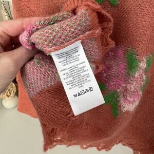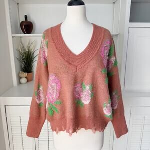 Anthropologie Rust Rose Distressed Drop Shoulder V-Neck Sweater Size S