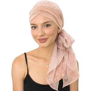 Soft and Breathable: Made from a high-quality bamboo viscose skull cap with a chiffon scarf attached, ensuring a comfortable fit and breathable experience.