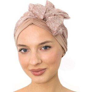 Women’s Beige Texture Scarf Skull Cap Chemo Headwear Hair Loss Turban