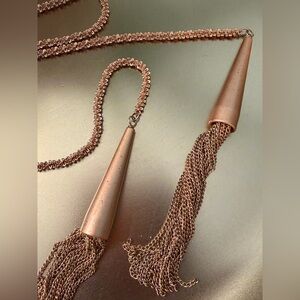 Gently used Kendra Scott Phara Lariat rose gold necklace with tassels. Super versatile! Good condition.