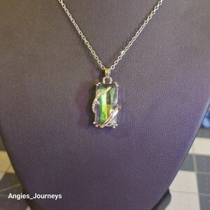 Green & purple stone wrap pendant 18' necklace