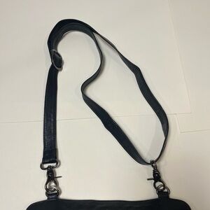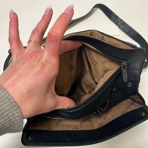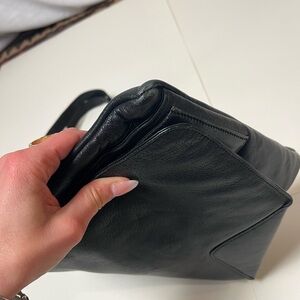 Sleek and stylish black leather bag, perfect for everyday use. Durable and versatile for any occasion. Lots of pockets. Excellent condition!