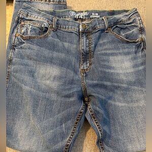 Wrangler Retro Medium Wash Distressed Blue Slim Straight Leg Jeans 38X32 VGUC