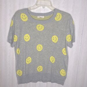 Anthropologie Gray and Yellow Smiley Face Blouse