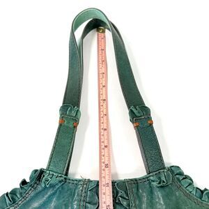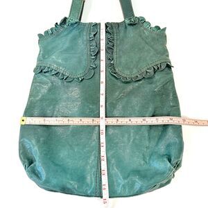 Lucky Brand Hobo Teal Blue Green Italian Lamb Leather Ruffled Y2K Boho Shoulder Bag