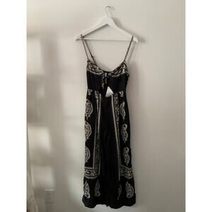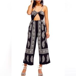 Chic and playful, this Free People “Feel The Sun” jumpsuit features a bold black-and-white pattern with flattering cutout details at the waist. Lightweight fabric offers effortless movement, while the wide-leg silhouette gives a breezy, laid-back vibe. Perfect for summer parties, vacation looks, or festival styling.